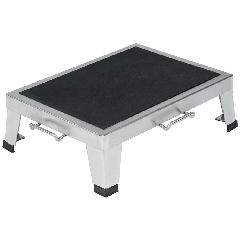 • Stainless steel foot stool can be safely stacked for increased height and interlocked to create larger platforms
