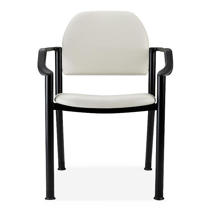 - Contoured, upholstered seat and back section with 18″ seat height; high-impact plastic chair arms on select models