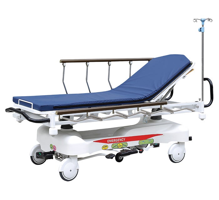 - Integrated telescoping IV stand, O2 cylinder holder, 5th wheel assist, 8″ casters with central locking and rubber corner bumpers.