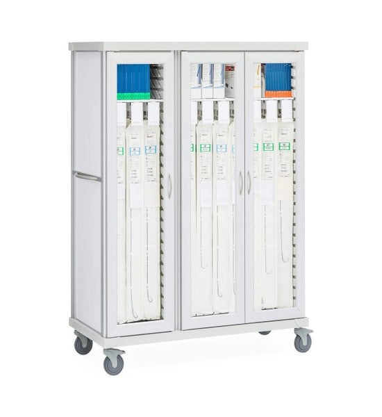 Includes 1 single-compartment shelf, 1 double-compartment shelf, 7 shelf dividers, and 10 9-hook Cath managers